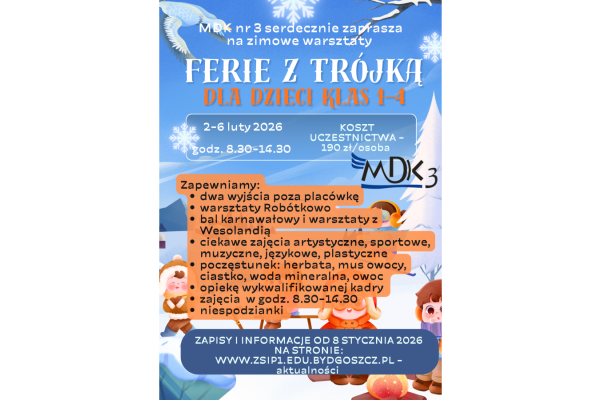 Czytaj więcej!Ferie zimowe 2026 - brak miejsc.