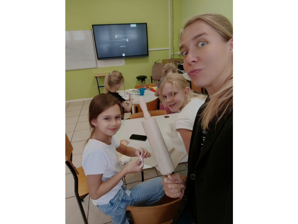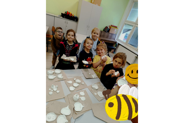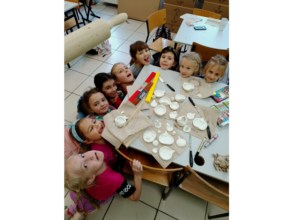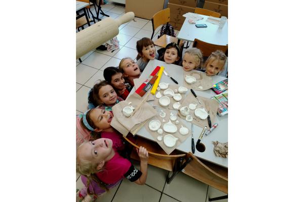 Ostatnią, "wieczorową" grupę odprowadza Tadziu, który również chciałby zapisać się na zajęcia plastyczne, ale z racji gabarytów wnioskuje o zmianę nazwy na Duży Artysta! ????