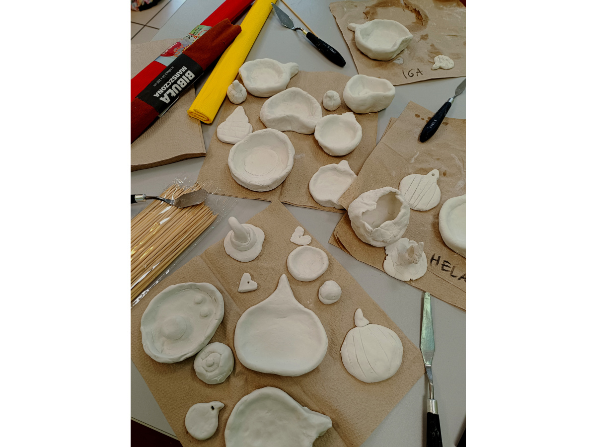 Co robią Mali Artyści na swoich zajęciach? Przede wszystkim dobrze się bawią! Dziś w ruch poszła glina samoutwardzalna i formowanie jesiennych talerzyków, miseczek i figurek. Motyw przewodni? DYNIA! Po cierpliwym wyrabianiu, głaskaniu, mizianiu i wygładzaniu pozostaje nam czekać na kolejne zajęcia, by ozdobić te cudeńka warstwą farby akrylowej.????