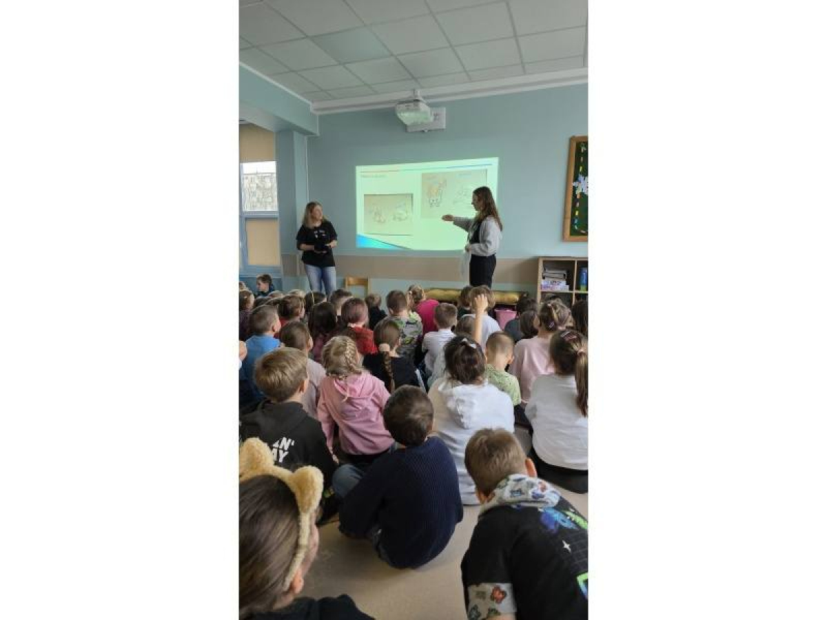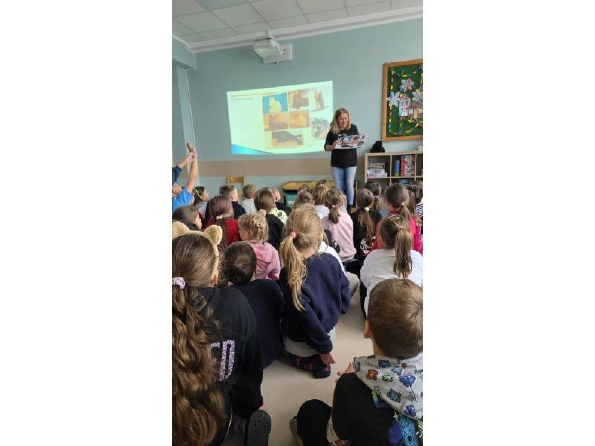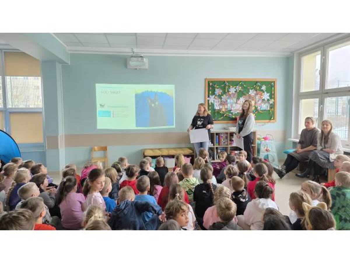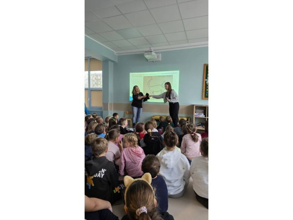 W piątek, 16 stycznia 2026 r. gościliśmy w naszej placówce Panią Justynę i Panią Joannę ze Stowarzyszenia STUKOT w Bydgoszczy, które przygotowały spotkanie dla klas pierwszych z naszej szkoły. Spotkanie zorganizowała Pani Aleksandra Podżerek - wicedyrektor MDK nr 3. Na spotkaniu dowiedzieliśmy się wielu ciekawych informacji o kotach co lubią jeść, jak się zachowują, kiedy są zadowolone, kiedy są smutne. I co dla niektórych okazało się dużym zaskoczeniem - że wcale nie piją mleka. Bardzo ważne, że dowiedzieliśmy się również jak należy dbać o bezdomne zwierzęta zwłaszcza zimą, która w tym roku jest wyjątkowo mroźna. Zachęcamy do odwiedzenia strony internetowej Stowarzyszenia STUKOT oraz ich siedziby na ul. Długiej 10 w Bydgoszczy. Można tam również sprawdzić jakie kotki są do adopcji i jeśli są warunku przygarnąć kociaka.