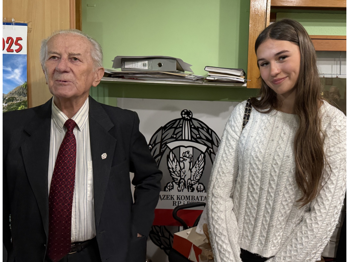Delegacja naszej szkoły odwiedziła dzisiaj członków bydgoskiego oddziału Związku Kombatantów Rzeczypospolitej Polskiej i Byłych Więźniów Politycznych. Maja Imiałek i Szymon Krzysztoszek wręczyli przepiękne kartki świąteczne wypisane od serca przez uczniów II klasy - prowadzonej przez panią Katarzynę Kempińską-Dankowską. Kombatanci, wśród których są byli więźniowie niemieckich obozów, w tym obozu w Potulicach, ze wzruszeniem przyjęli ten dowód pamięci o ich historii. W spotkaniu wziął udział także pełnomocnik Wojewody Kujawsko-Pomorskiego do spraw Dziedzictwa Historycznego pan Mikołaj Hetzig.