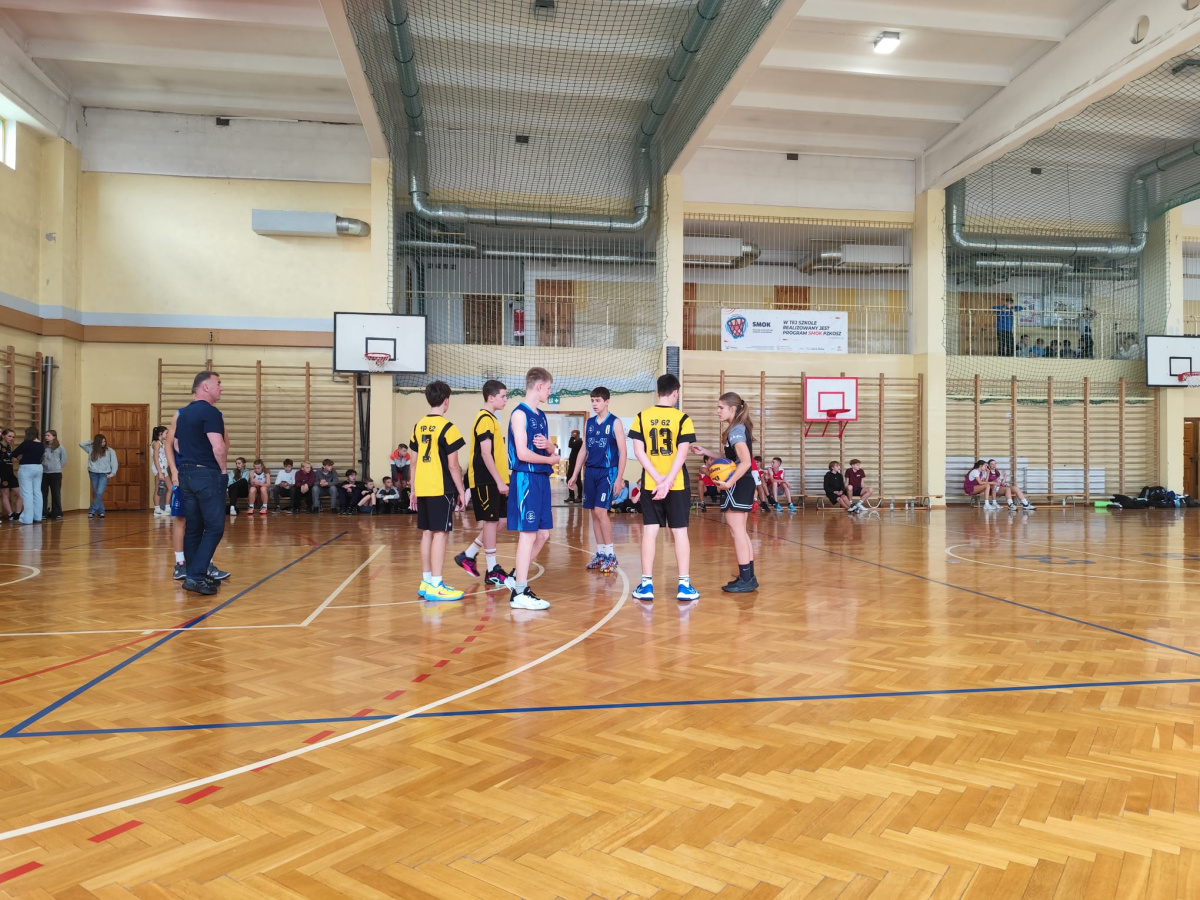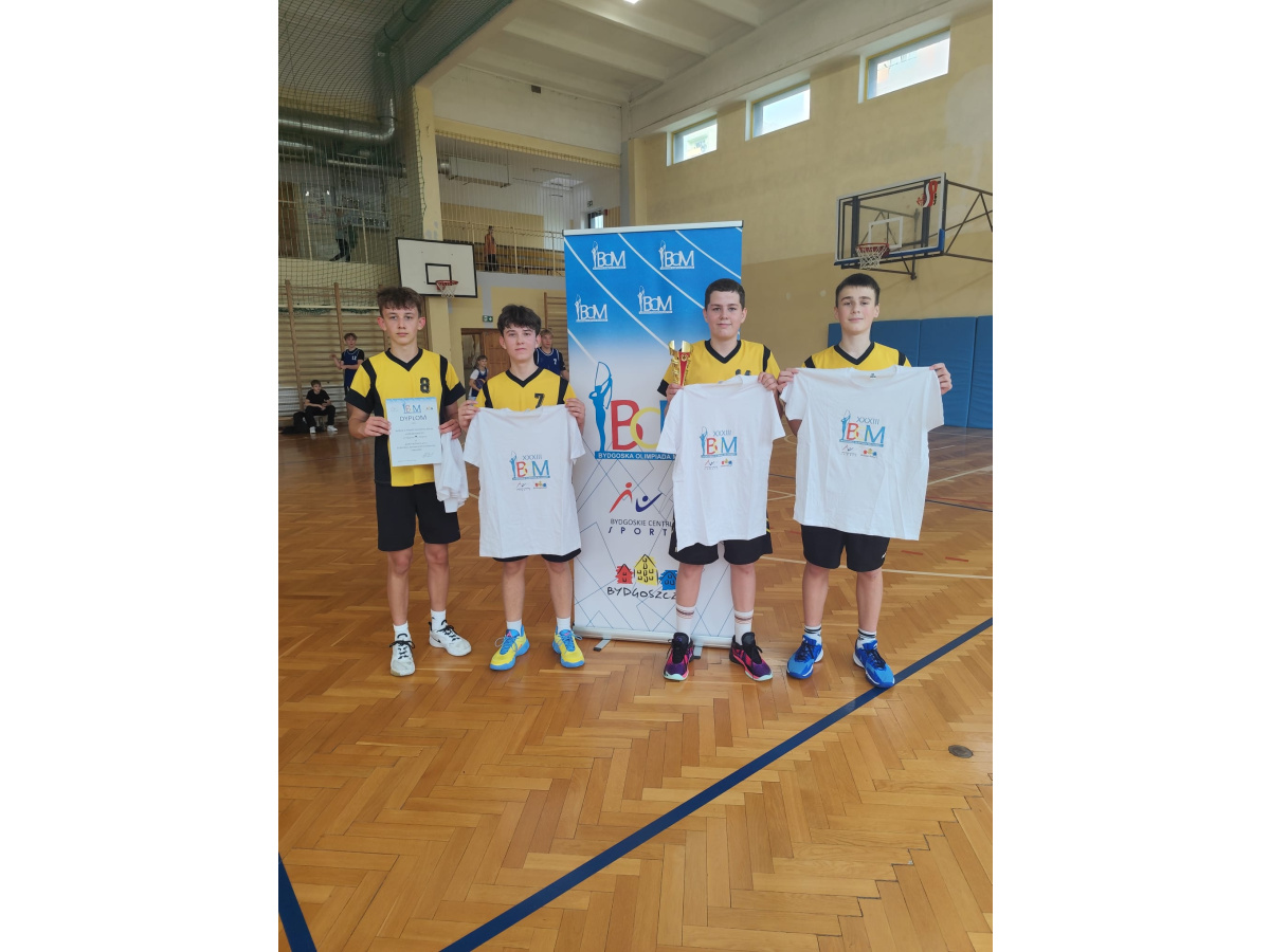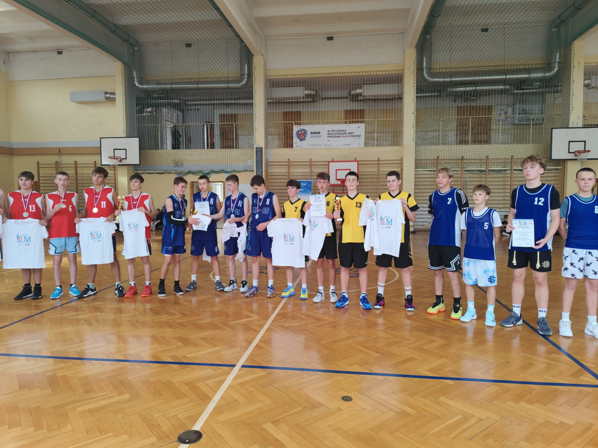 W turnieju koszykówki 3x3 to był nasz debiut. I to udany debiut. Na turniej szliśmy, żeby pograć, zobaczyć jak to jest. A było na co popatrzeć. Same koszykarskie klasy stanęły do walki. No cóż, pomyśleliśmy, jakoś to będzie. A tu niespodzianka... Naszą szkołę reprezentowali Dominik, Wojtek, Antoni i Natan. Chłopaki dali z siebie wszystko. Zagrali super. Tak, jakby grali ze sobą od zawsze. Ostatecznie zajęliśmy IV miejsce, ustępując tylko w/w klasom koszykarskim. Możemy być z siebie dumni.