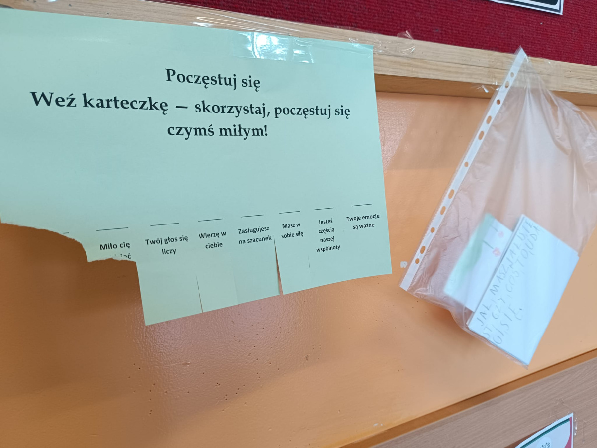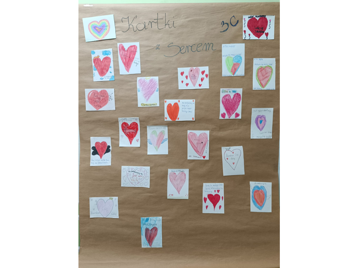 - Klasy 3 i 4 przygotowały "kartki z sercem" – pełne dobrych słów, pozytywnych komunikatów i wsparcia dla rówieśników. Każda kartka była małym gestem dobra.