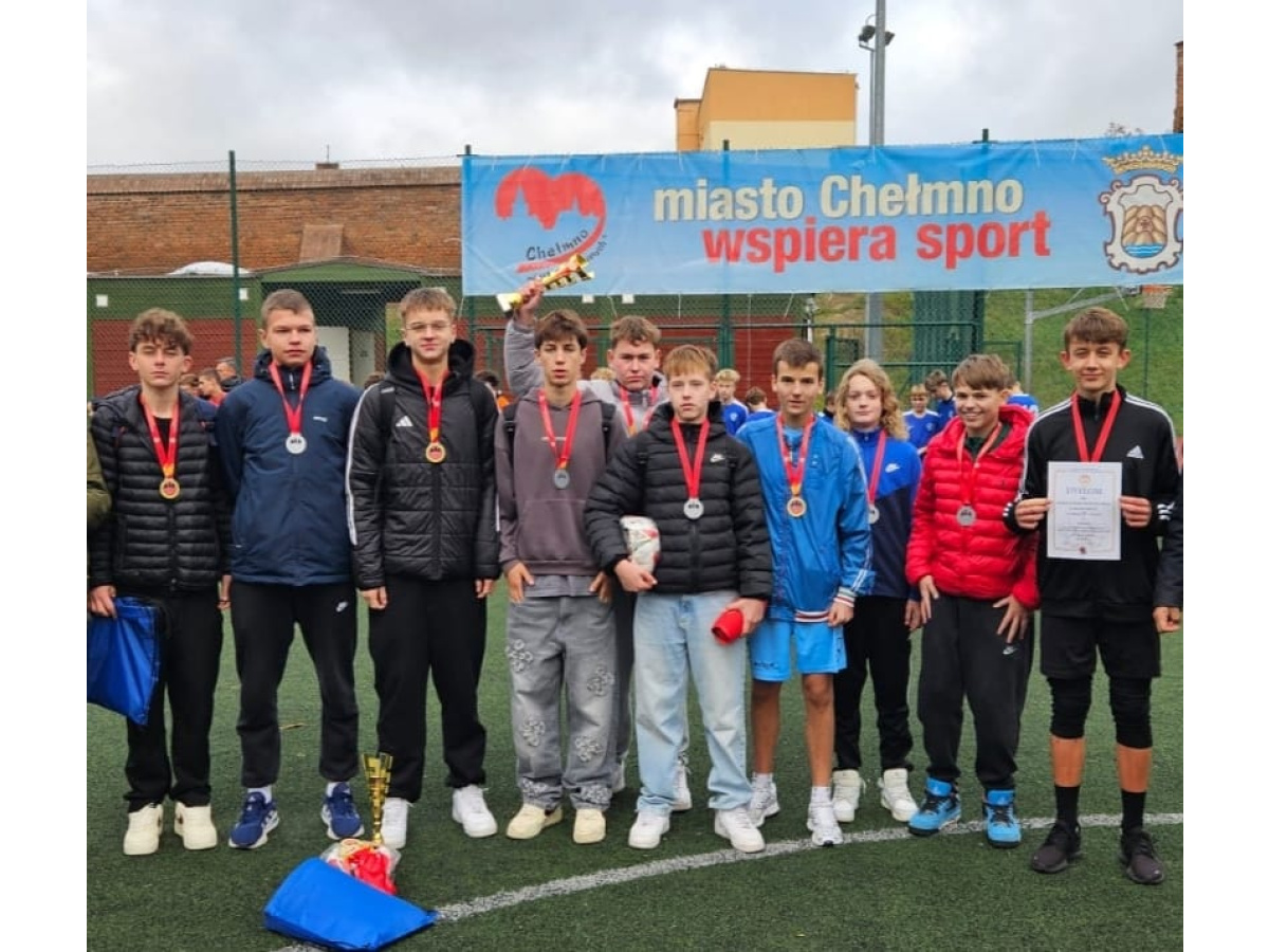 Sześć tygodni zmagań na boisku piłkarskim zakończone. We wtorek 28.10.2025r. zagralismy finał wojewódzki w ramach Igrzysk Młodzieży Szkolnej w piłce nożnej chłopców. Z dorobkiem 5 punktów: dwa remisy i zwyciestwo, zajęliśmy II miejsce zdobywając srebrny medal i tytuł WICEMISTRZÓW WOJEWÓDZTWA KUJAWSKO - POMORSKIEGO. Jest to najpoważniejsze osiągnięcie naszej szkoły w rozgrywkach piłki nożnej na przełomie wielu, wielu lat. Gratulacje dla NASZEJ DRUŻYNY!!! Gratulacje dla SP 62!!! Naszą szkołę reprezentowali: Natan Zieliński, Mateusz Adamczyk, Antoni Świerczyński, Damian Frąckowiak, Nikodem Józefowicz, Nataniel Józefowicz, Piotr Kasprzak, Marcel Lemanowicz, Patryk Kołodziejski, Platon Maskoukin.